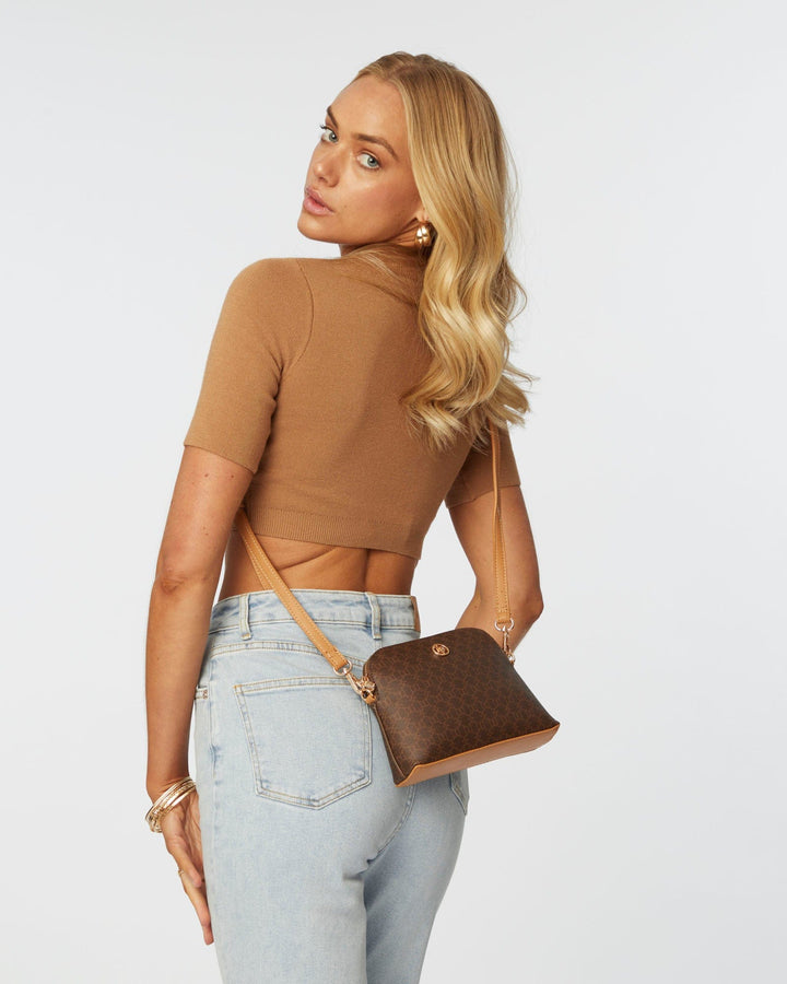 - Monogram finish with gold tone hardware