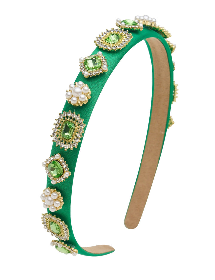 The Multibead Narrow Headband from Amelie captures a touch of old-world glamour, perfect for dressing up your look with gorgeous colour and shine. This slim band in bold green features faceted pink stones and fine faux pearl detailing, perfect for bringing an elegant finishing touch to any ensemble.