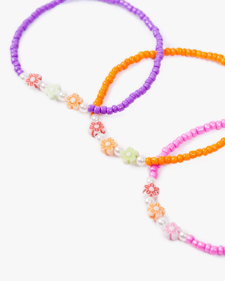Multi Colour 3 Pack Multi Colour Flower Beaded Bracelet