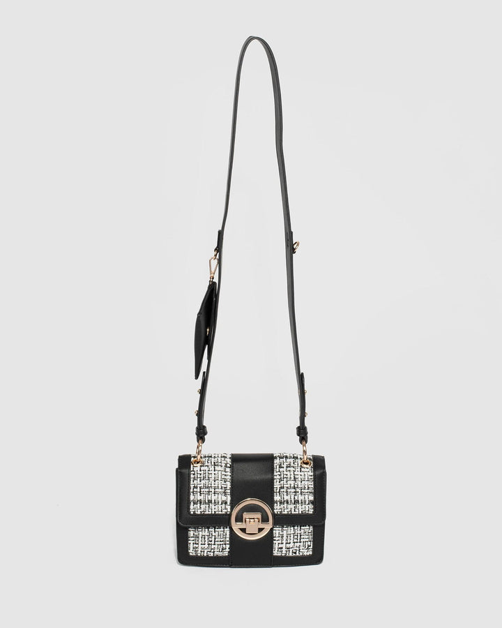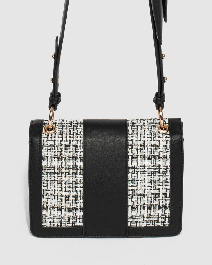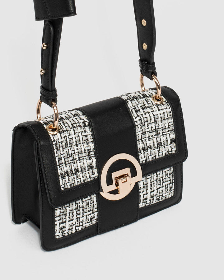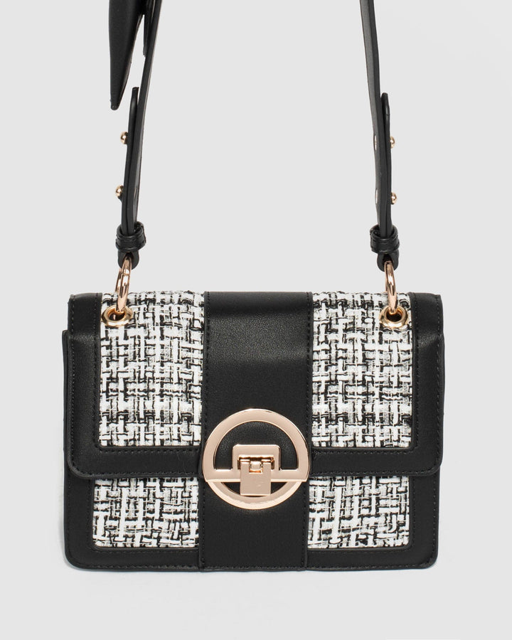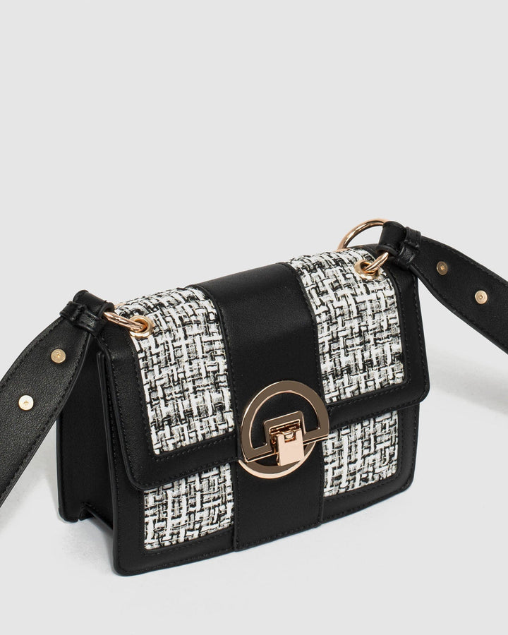 - Sequin tweed and textured faux leather
