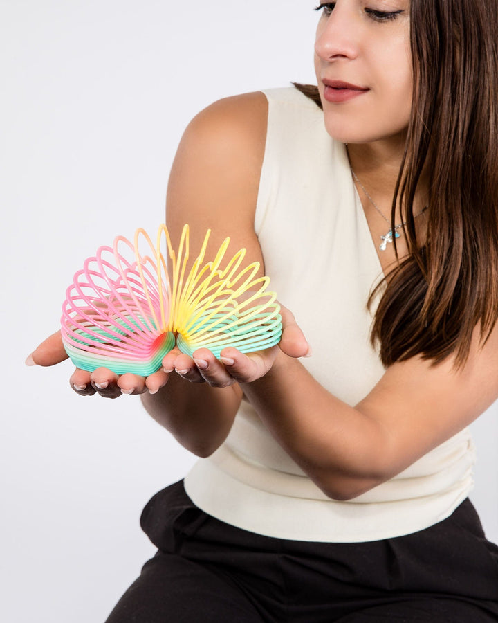 Get ready for hours of playful fun with our love heart slinky! This adorable toy is a delightful twist on the classic slinky, featuring heart-shaped coils that bounce and spring with love-filled joy. It's perfect for kids who love to watch things move and twirl. Watch in amazement as the slinky springs to life, creating a mesmerising display of colourful spirals.