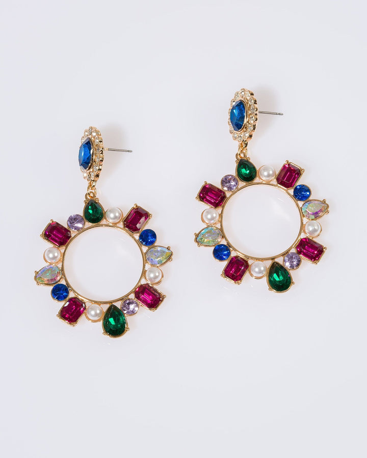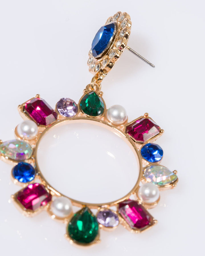 Multi Colour Crystal Oval Drop Earrings