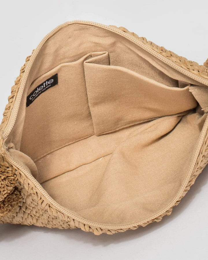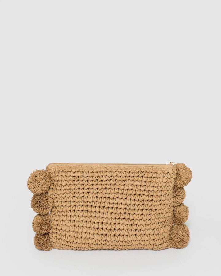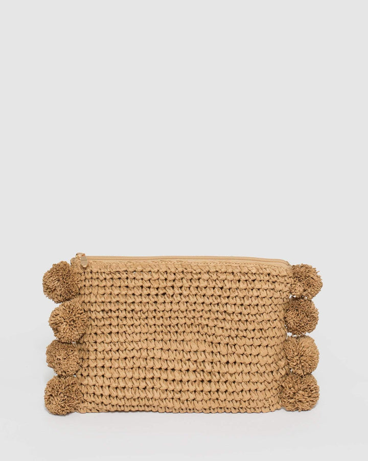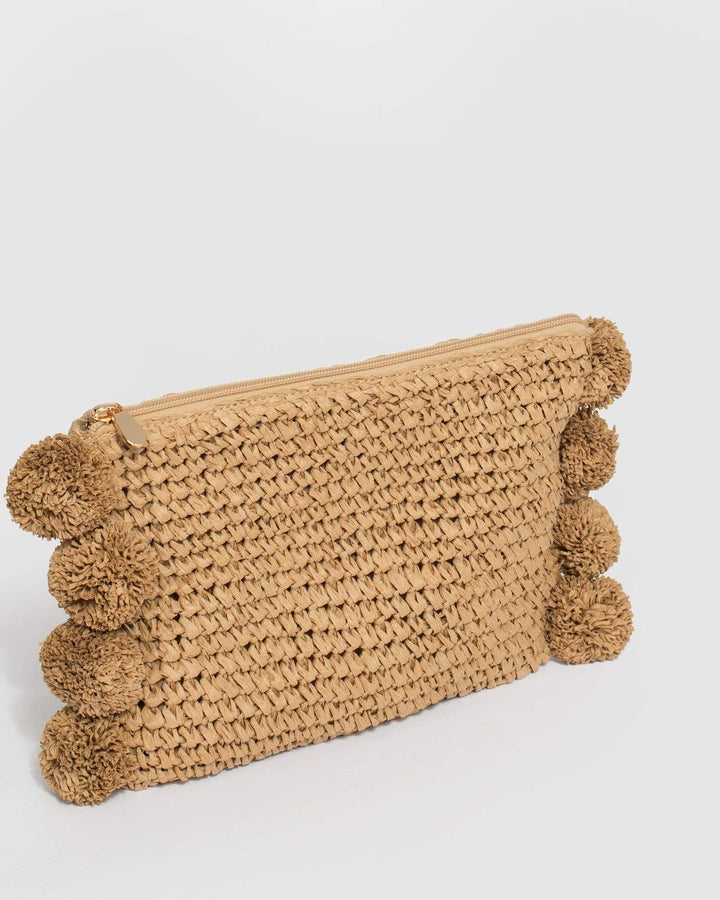 Natural Helena Pom Pom Clutch Bag