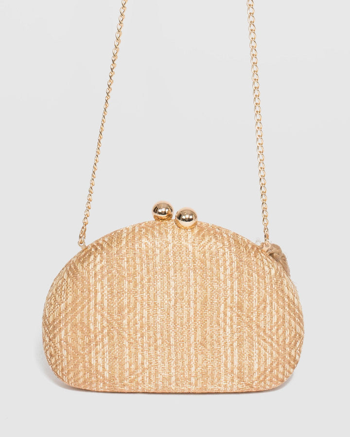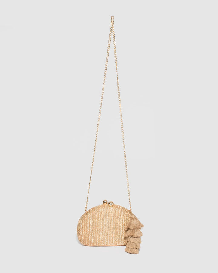 - Natural finish with gold tone hardware
