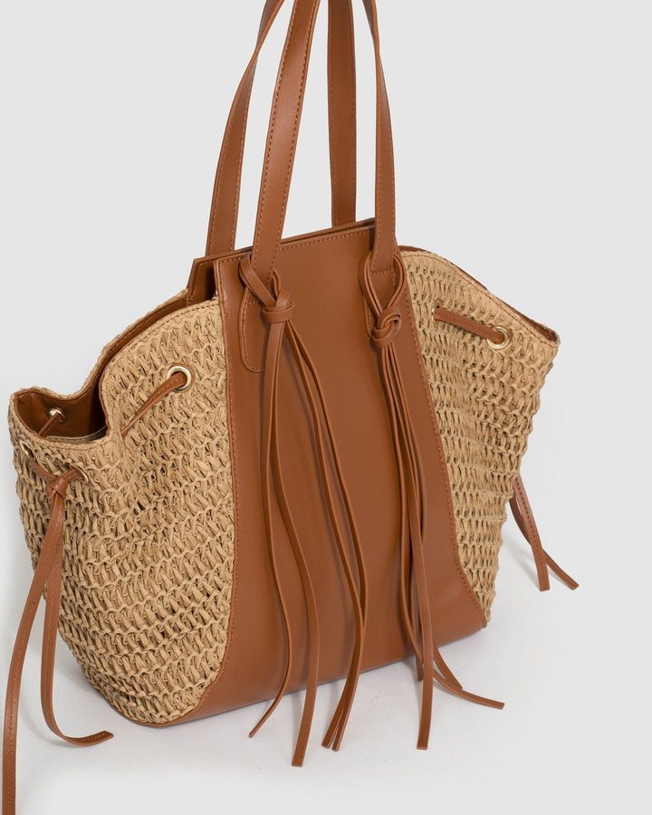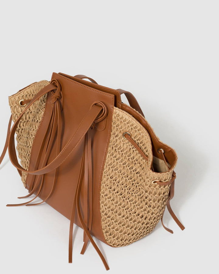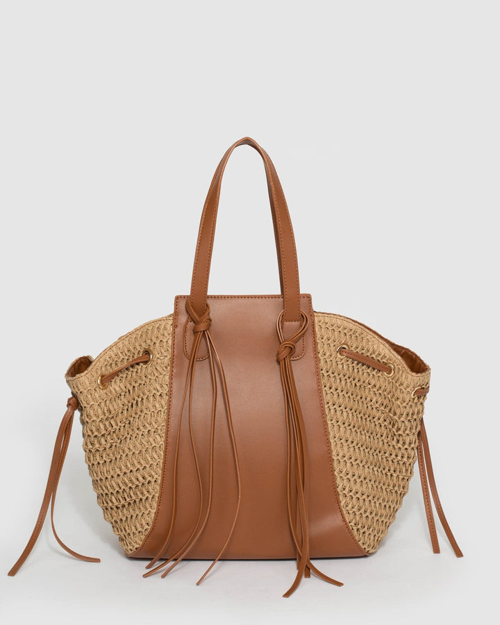 Natural Sofia Shoulder Tassel Bag | Tote Bags