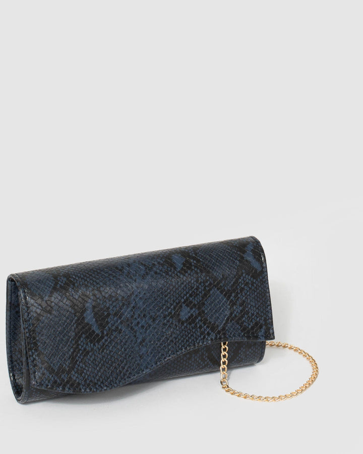 Navy Blue Henrietta Wave Clutch Bag