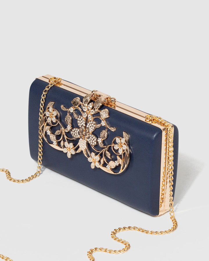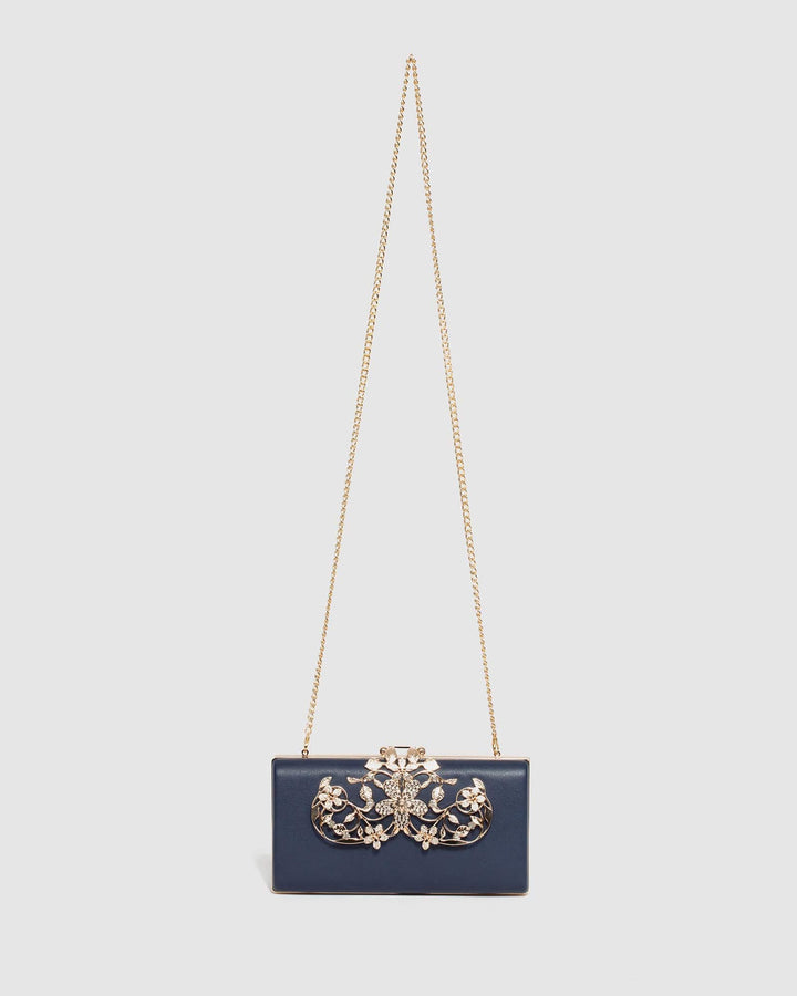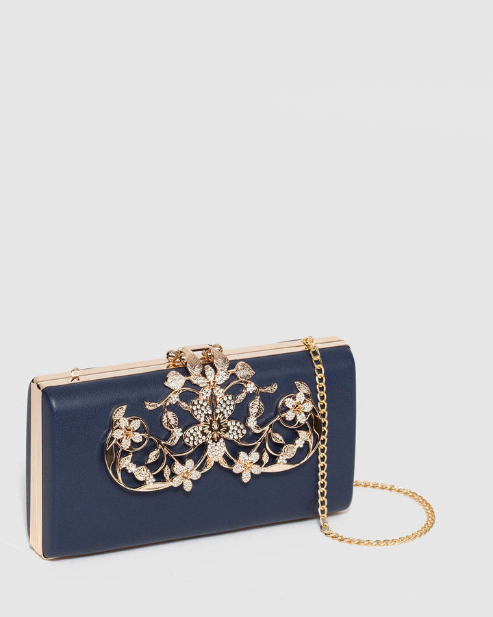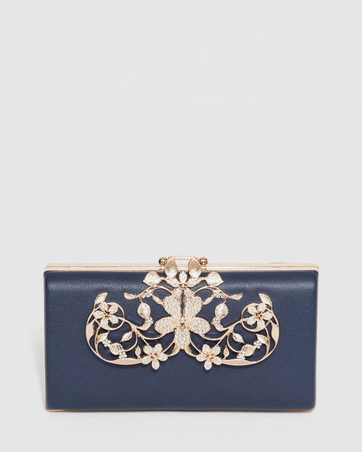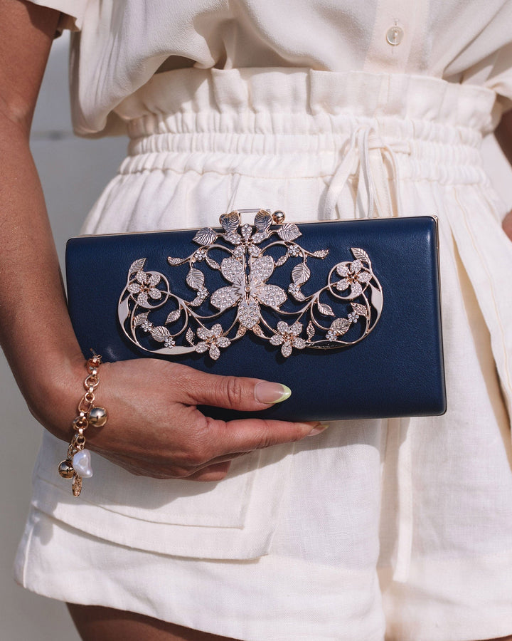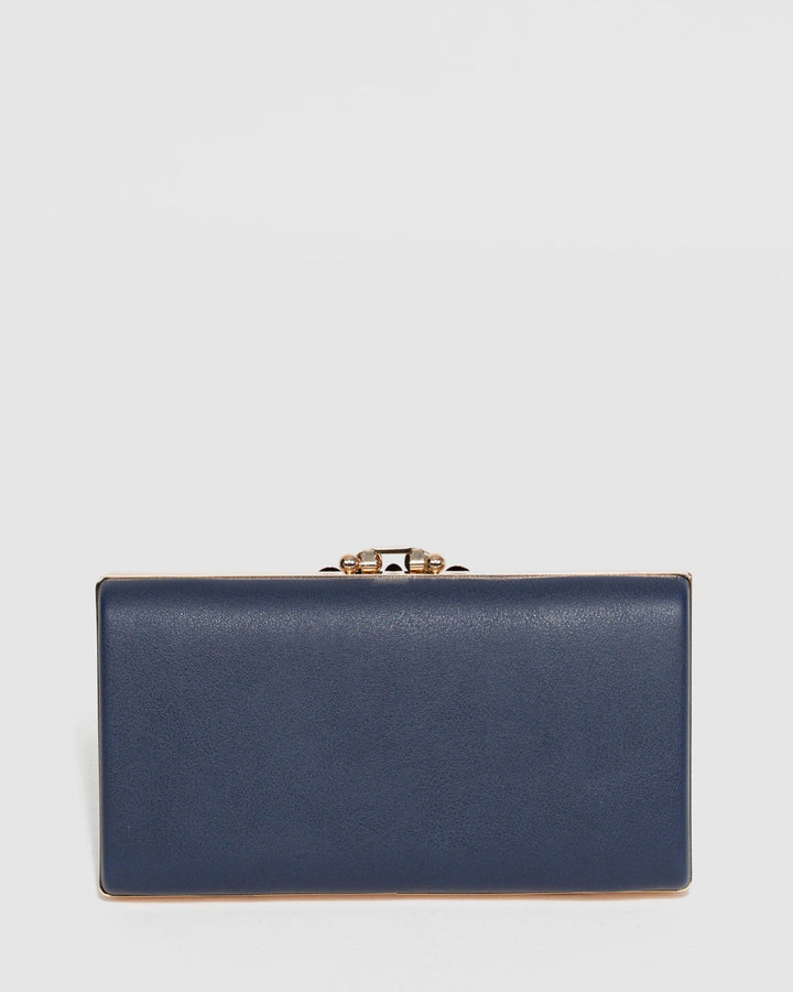 Navy Blue Victoria Clip Clutch Bag