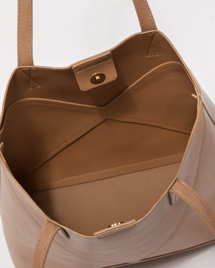 Natural Selena Panel Tote Bag