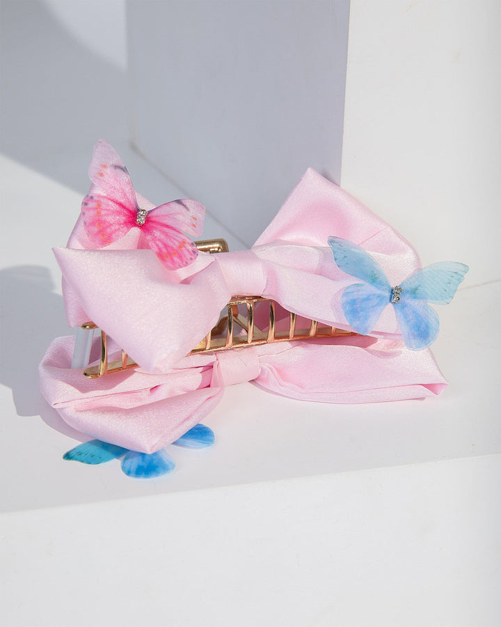 Pink Bow With Butterflies Claw Clip