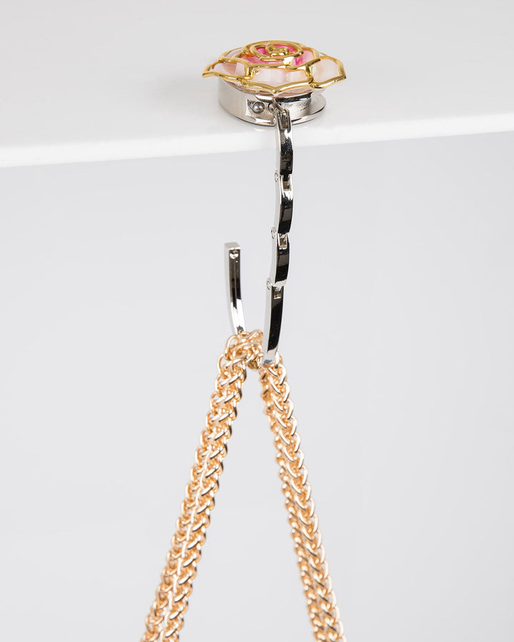 Pink Flower Handbag Hook Holder