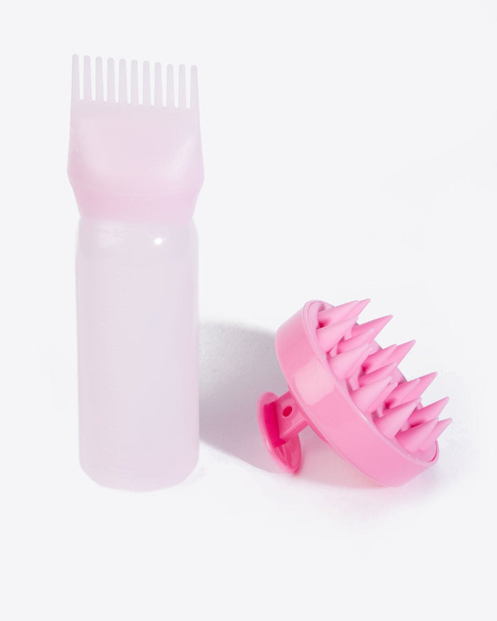 The hair duo set you never knew you needed! Use the hair oiling tool to apply your scalp rinse or hair oil treatment and then use the scalp massaging brush to massage it in.