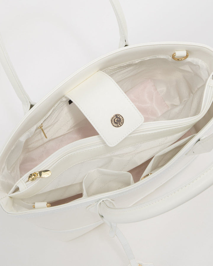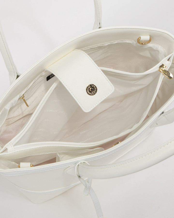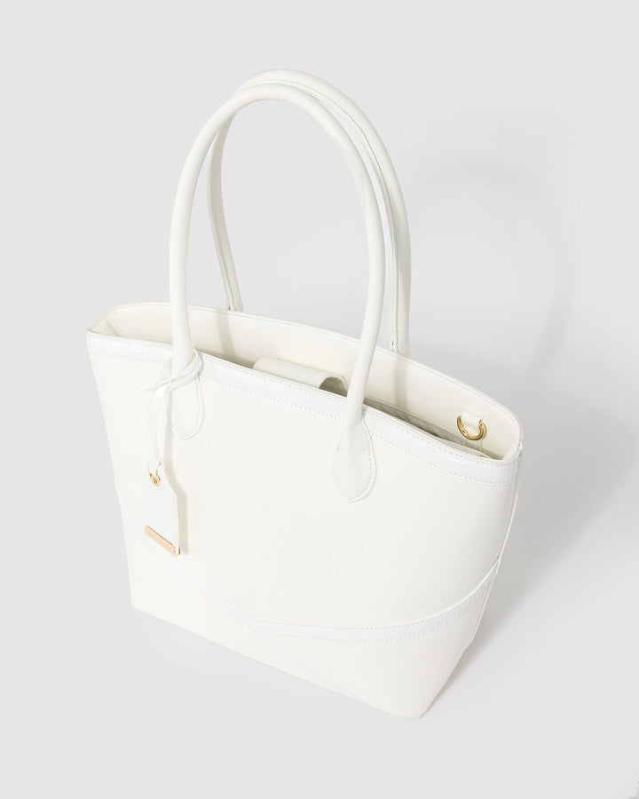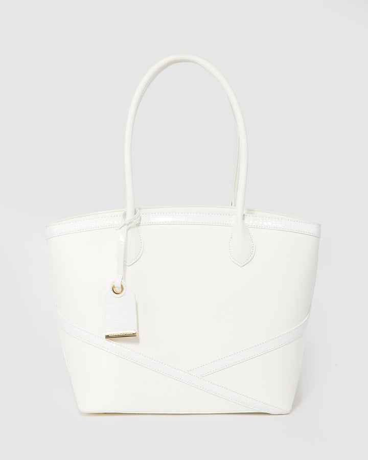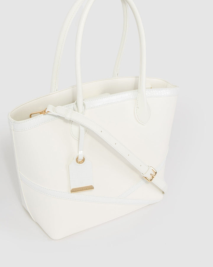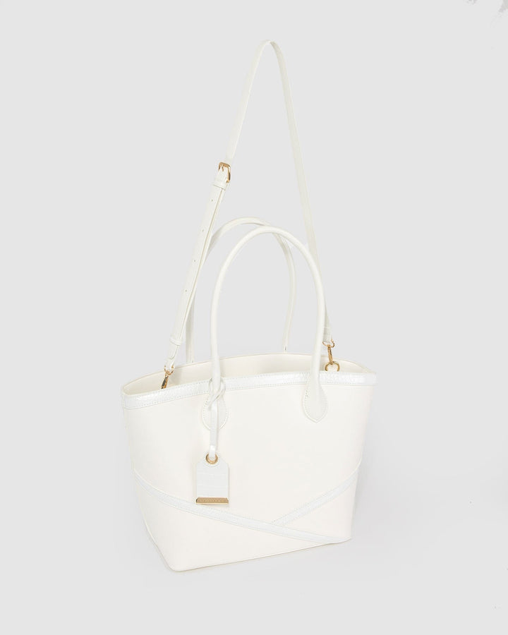 White Livvy Cross Panel Tote Bag