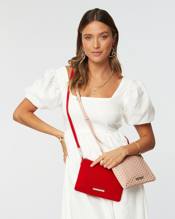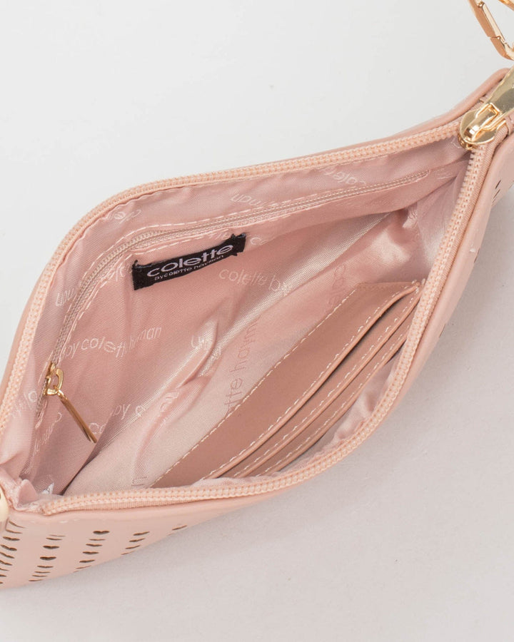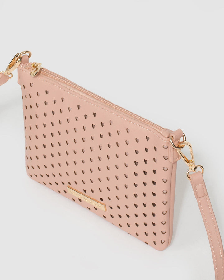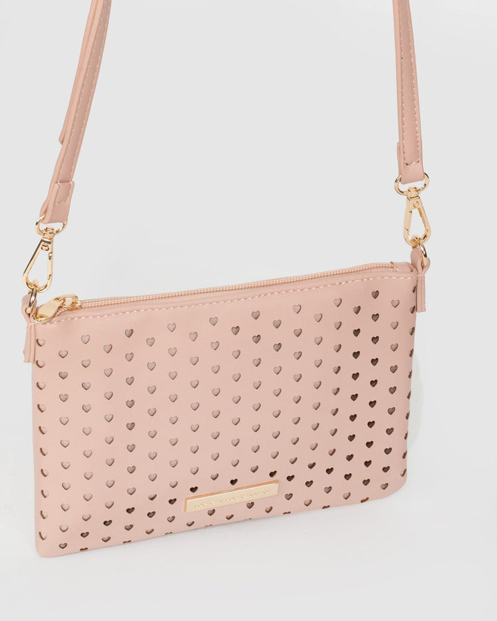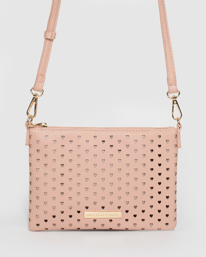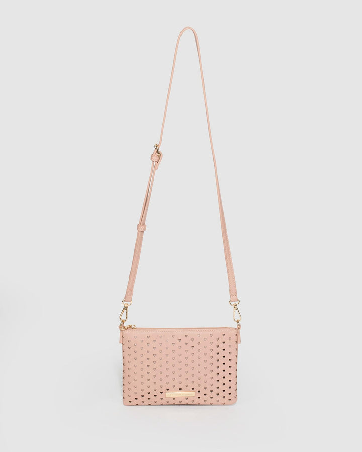 Pink Peta Heart Punchout Crossbody Bag
