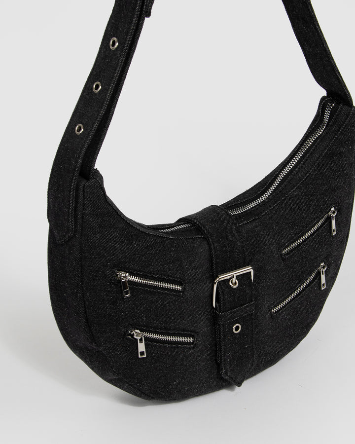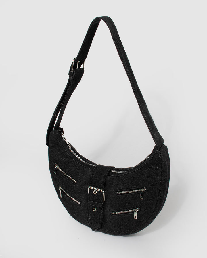Straight from our Denim Nation collection, the Polly Denim Shoulder Bag is the definition of edgy and cool. Designed in a crescent shape with buckle detailing and multiple front zip pockets, it combines utility with attitude. With its adjustable strap and versatile compartments, it’s the perfect everyday bag to keep your essentials close in style.