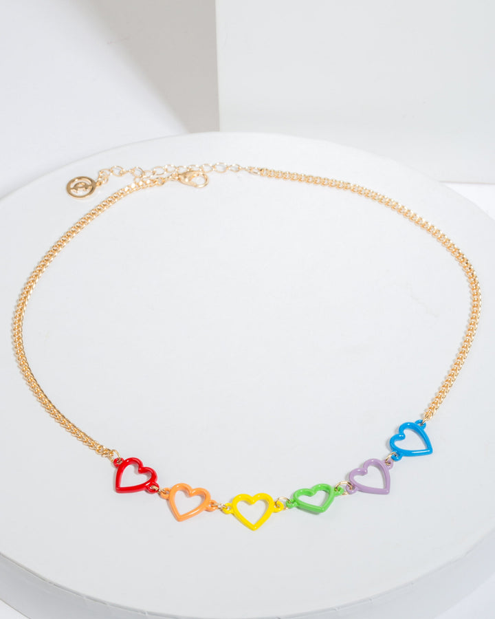 Rainbow Colour Love Heart Necklace