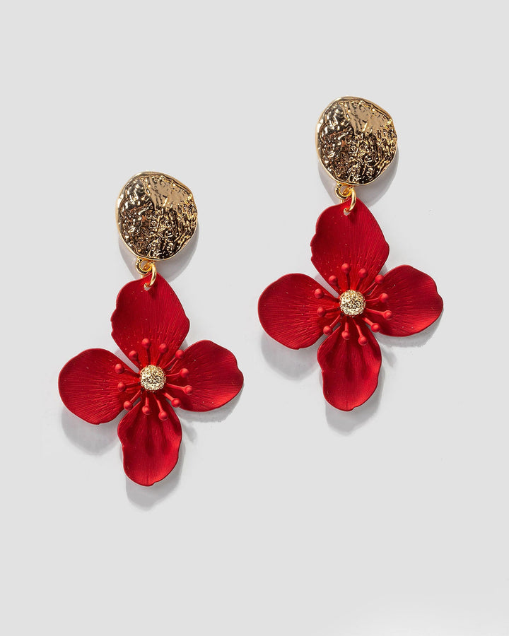 Red Coated Statement Flower Earrings