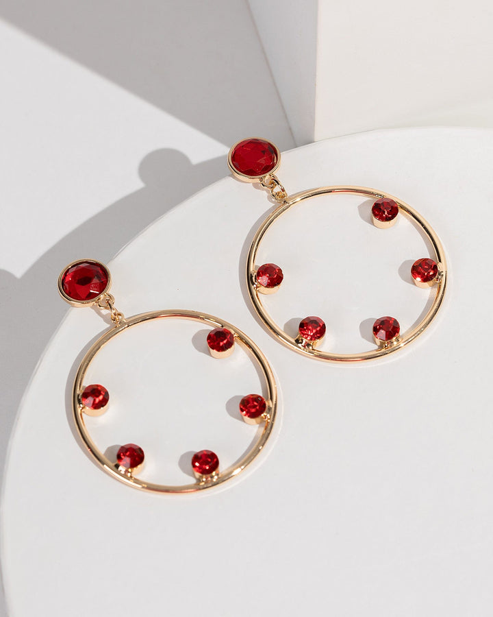 Red Crystal Halo Drop Earrings