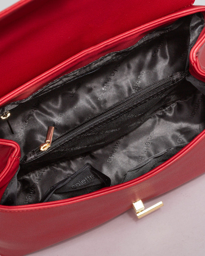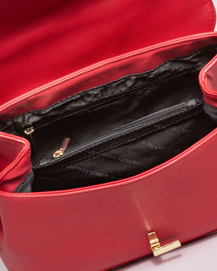 - Red finish with gold tone hardware