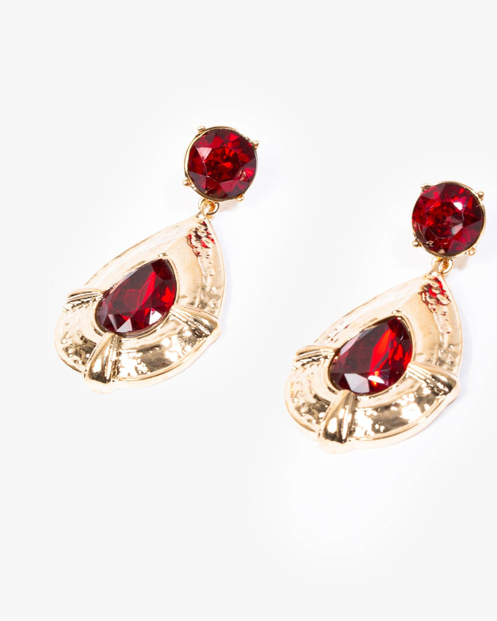 Red Textured Framed Tear Drop Earrings
