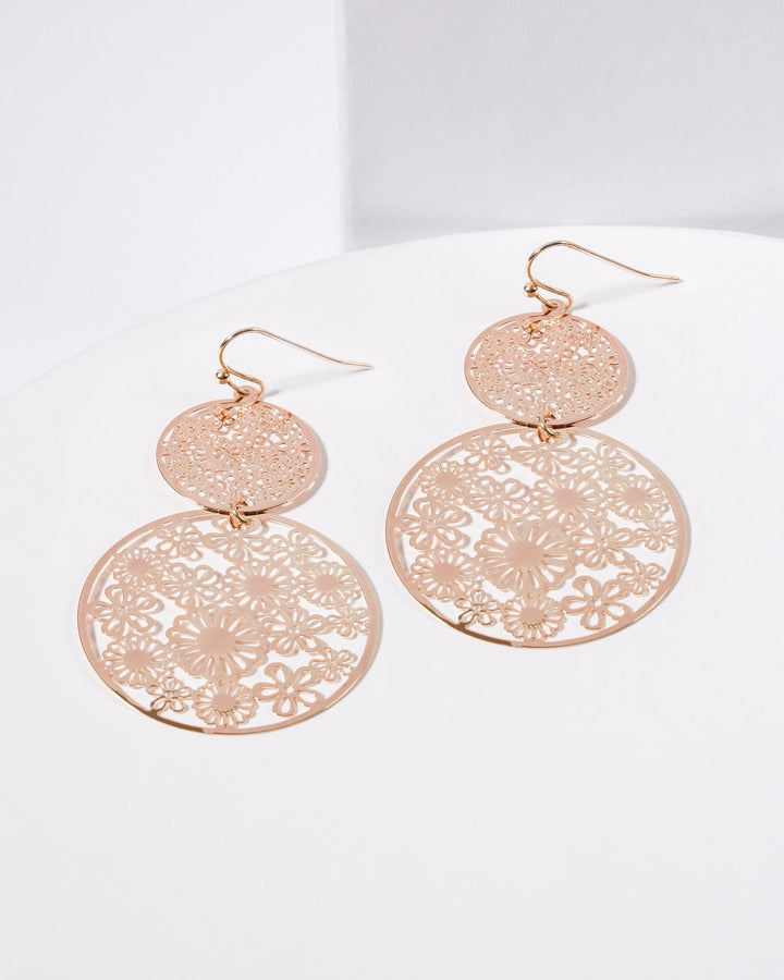 Rose Gold Floral Circle Statement Earrings