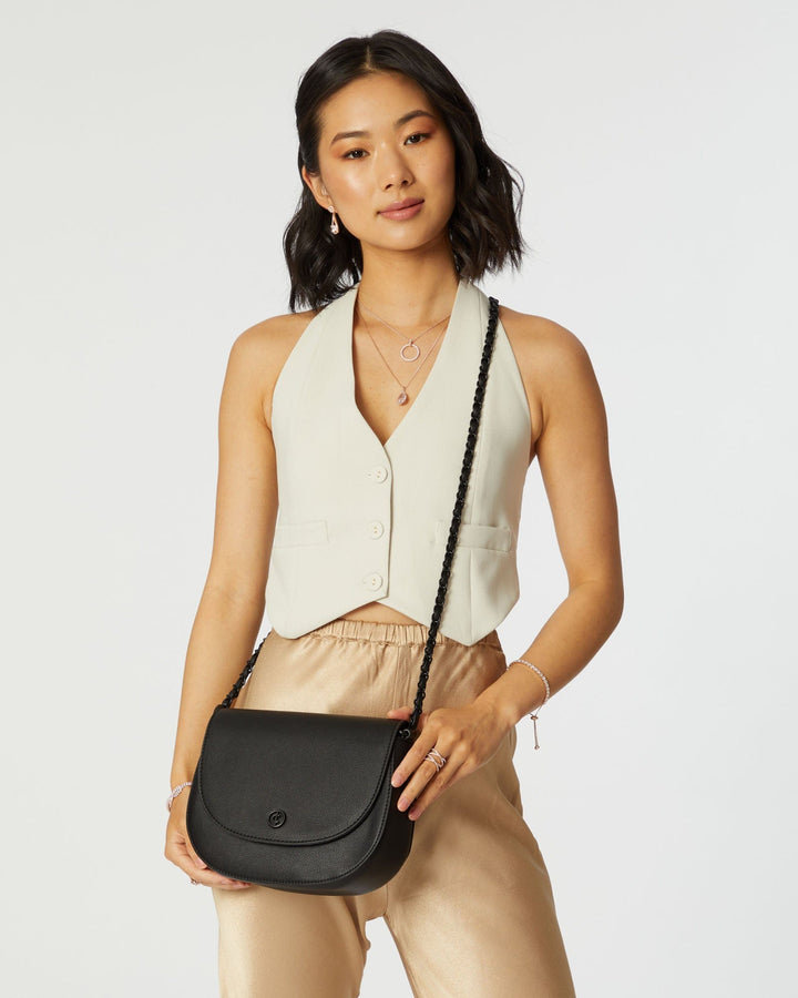 Sadie Black Saddle Crossbody Bag