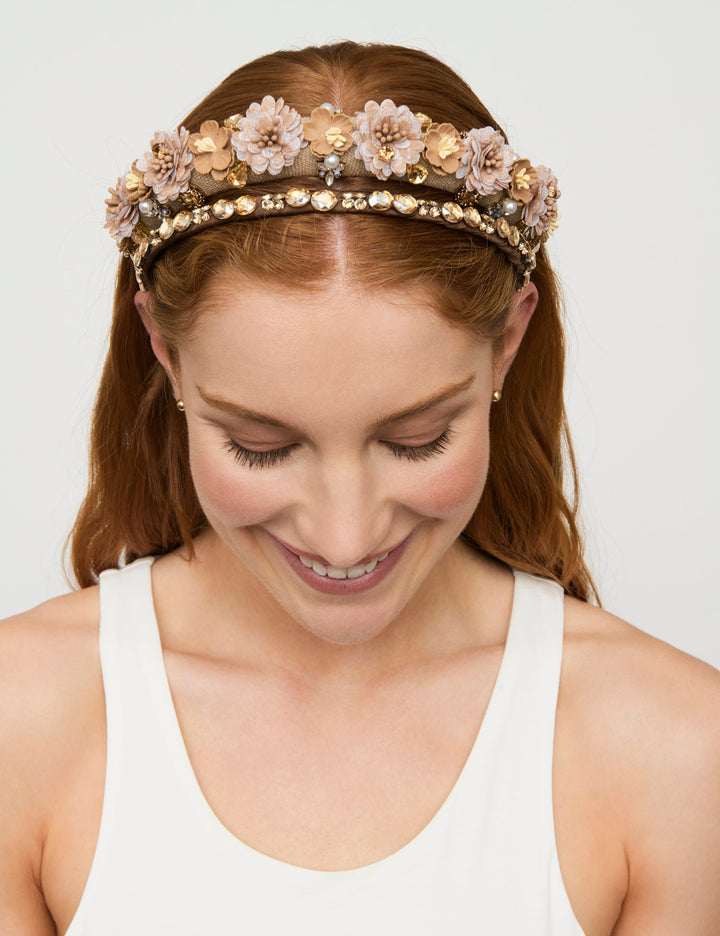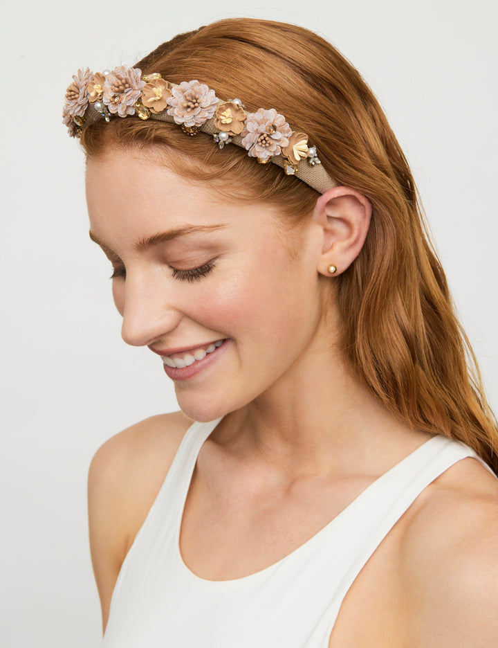 Bring a fresh and radiant charm to your look with the Seaside Daisy Padded Headband. Crafted with a soft natural-toned band adorned with delicate faux flowers and sparkling faceted stones, this piece combines elegance with a playful floral touch. Perfect for adding a hint of brightness and texture to any outfit.