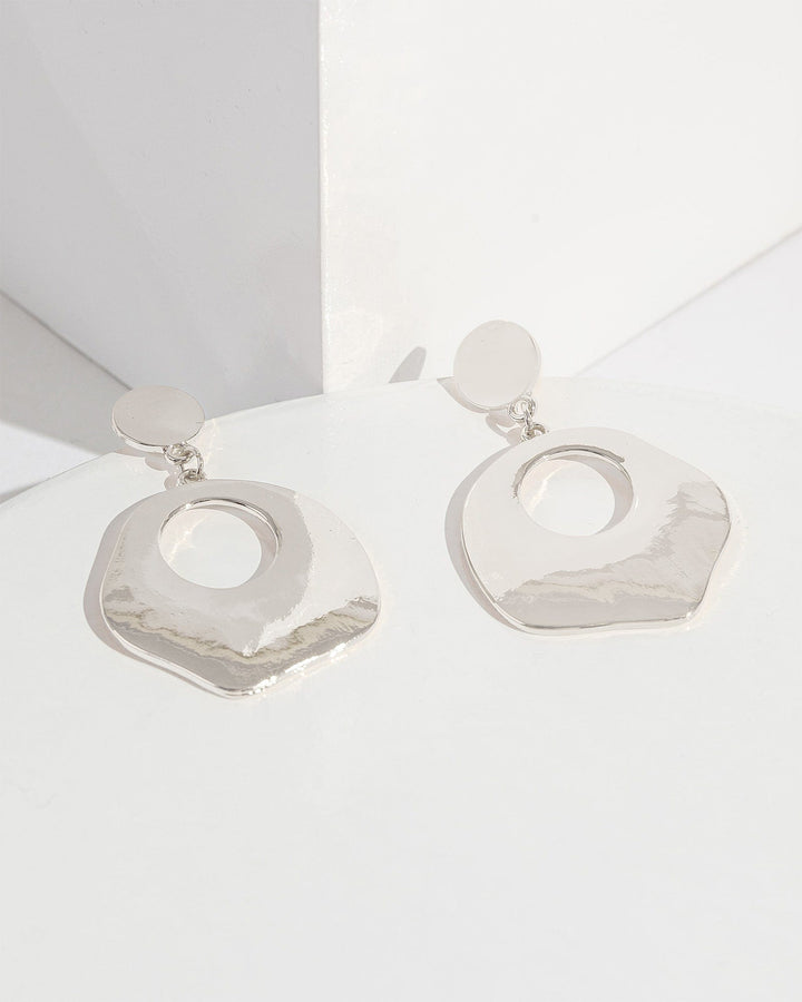 Silver Assymetrical Post Drop Earrings
