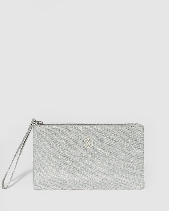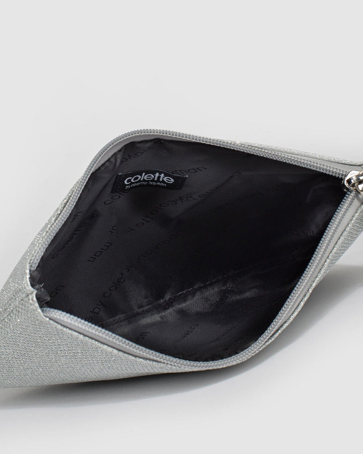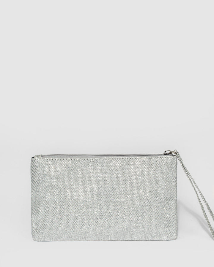 - Silver glitter finish with silver tone hardware