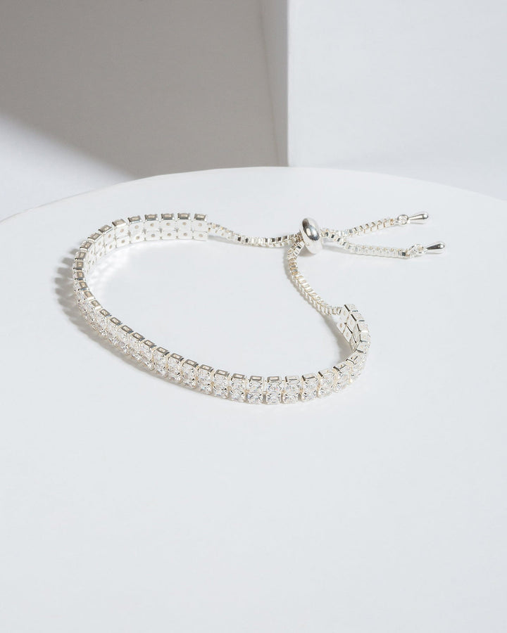 Silver Cubic Zirconia Crystal Adjustabe Bracelet