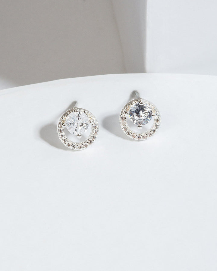 Silver Cubic Zirconia Crystal With Ring Stud Earrings