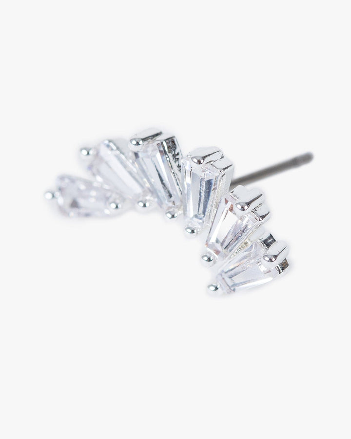Silver Cubic Zirconia Fanned Stud Earrings