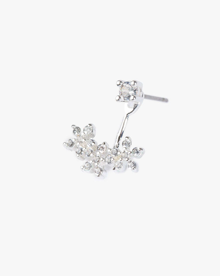 Silver Cubic Zirconia Flower Front Back Earrings