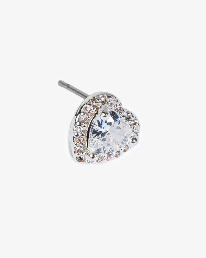 Silver Cubic Zirconia Heart Framed Stud Earrings