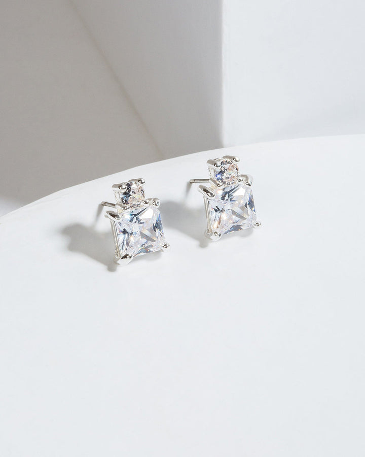 Silver Cubic Zirconia Stacked Crystal Stud Earrings