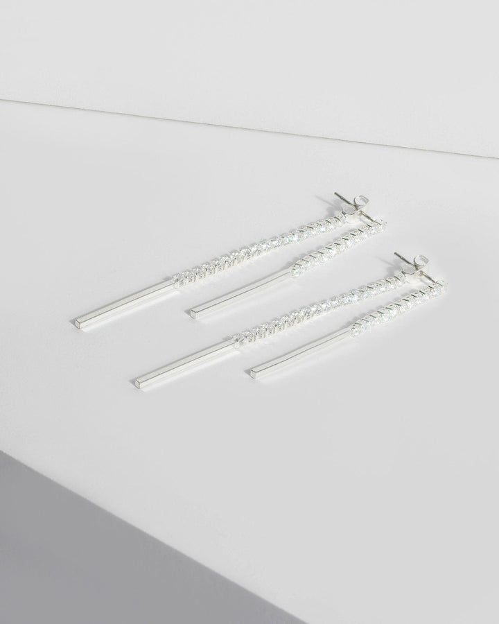 Silver Diamante Cup Chain Bar Front Back Earrings