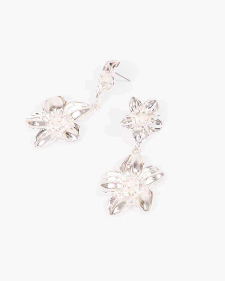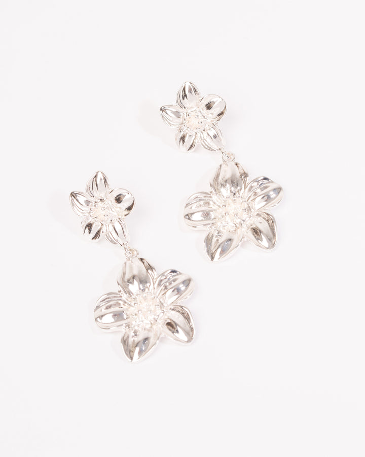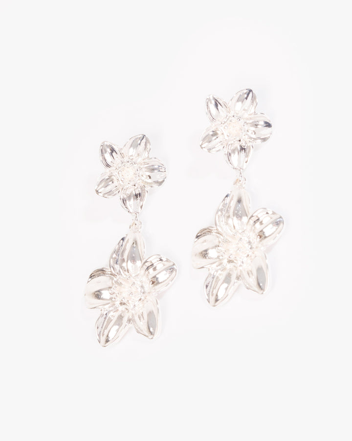 Silver Flower Drop Earrings