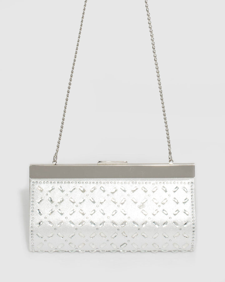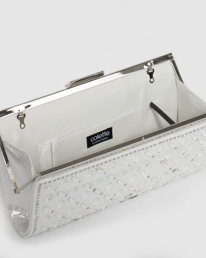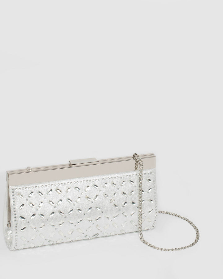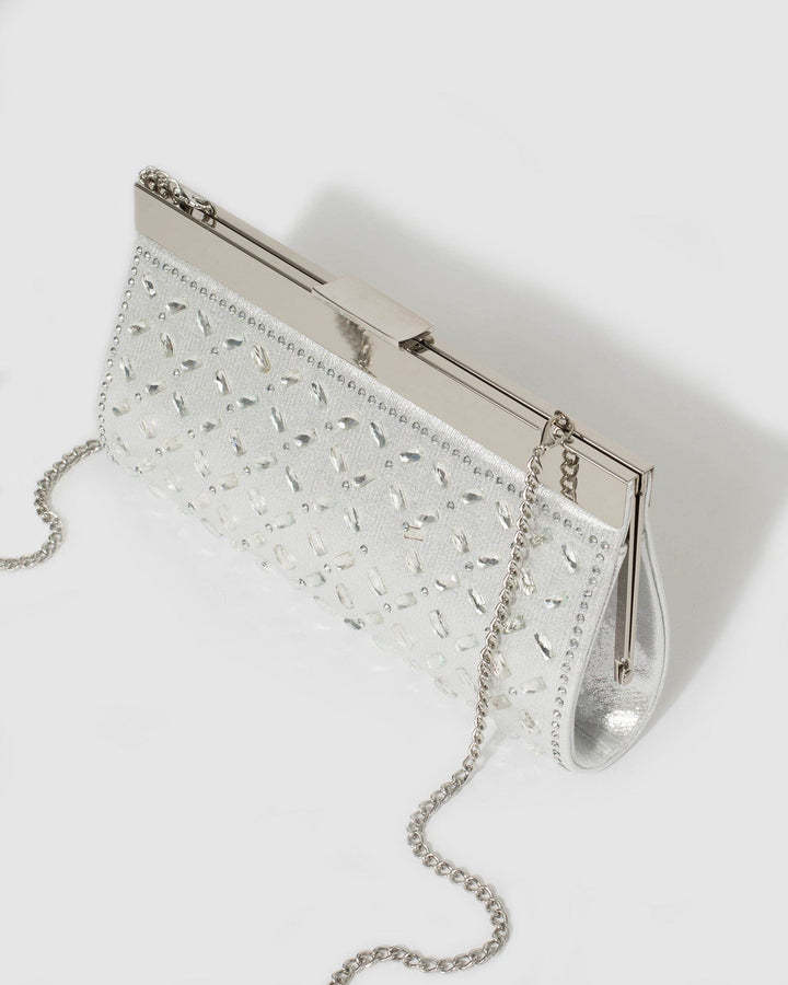 Silver Lauren Embellished Clutch Bag