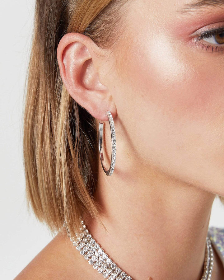 Silver Small Thin Diamante Hoop Earrings
