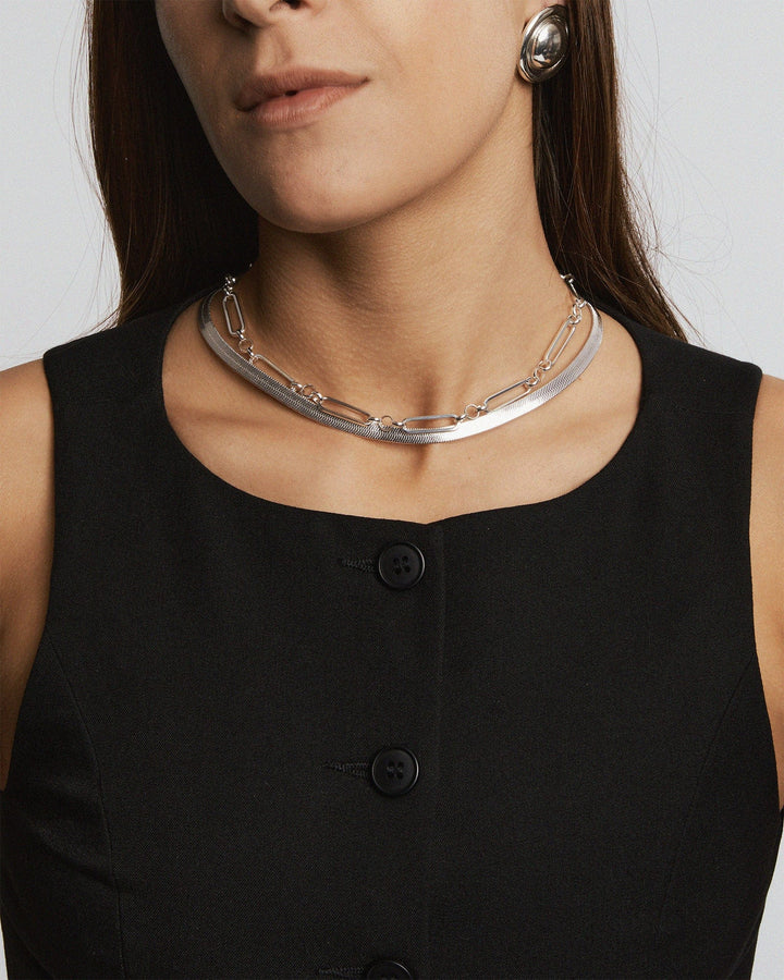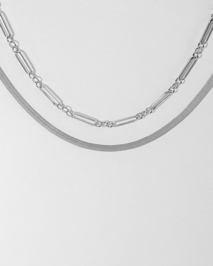 Silver Snake And Long Chain Necklace