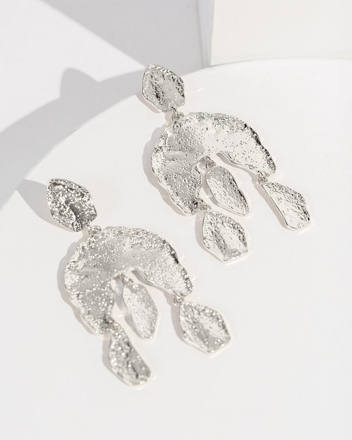Silver Textured Arch Drop Earrings