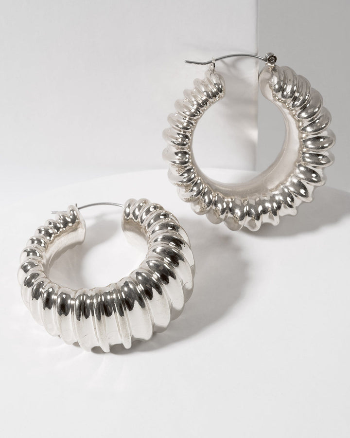 Silver Textured Metal Hoop Earrings