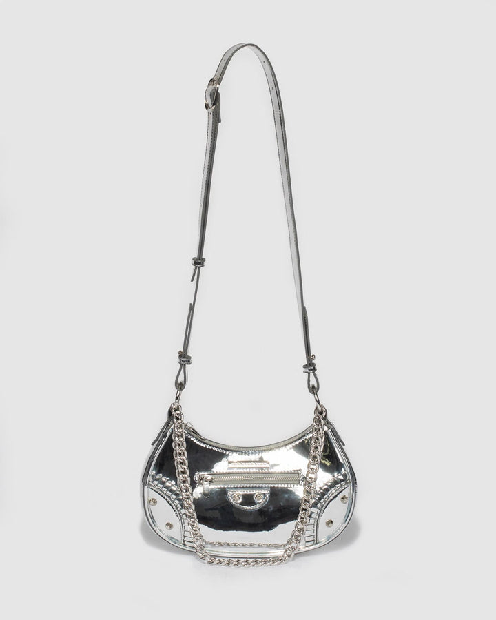 Silver Vanessa Stud Crossbody Bag
