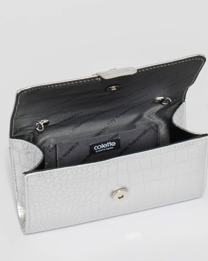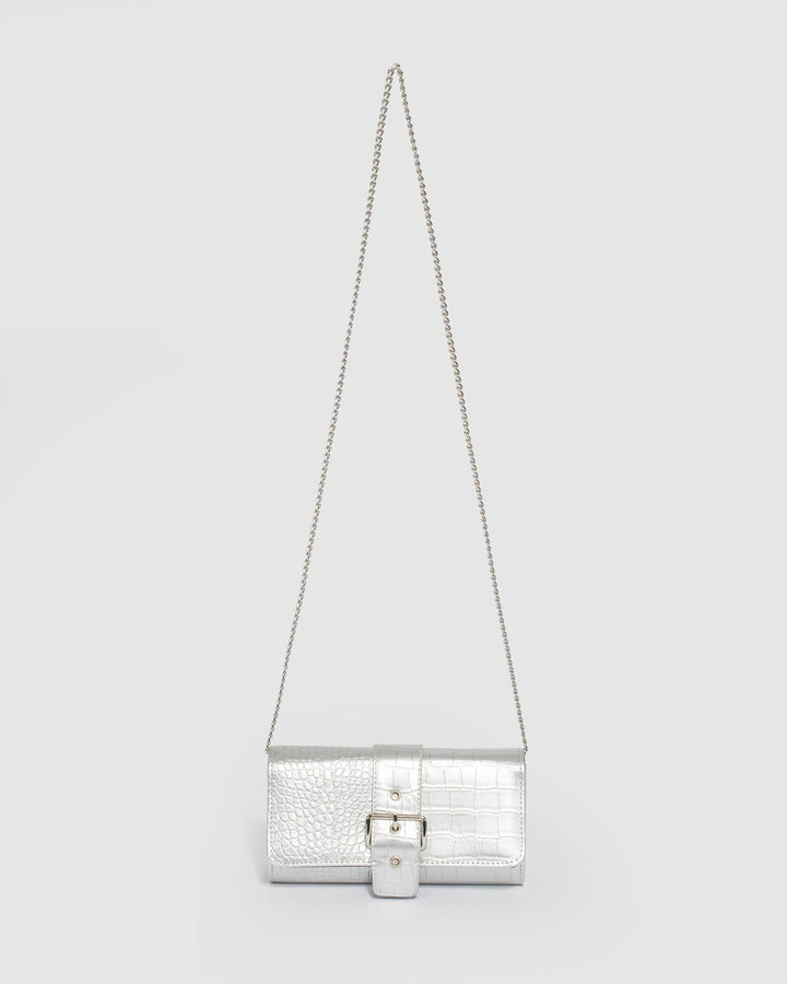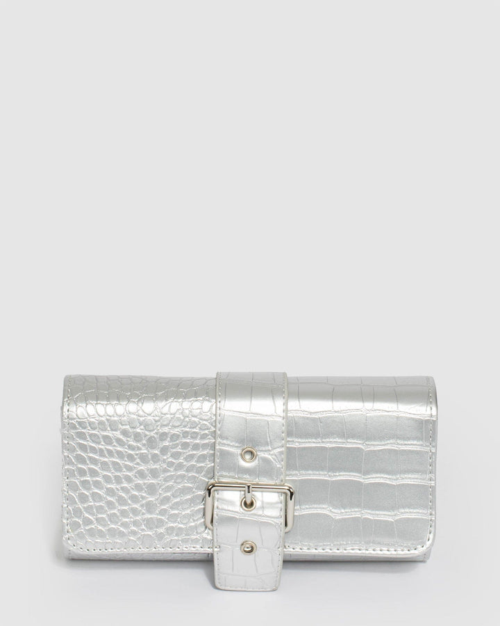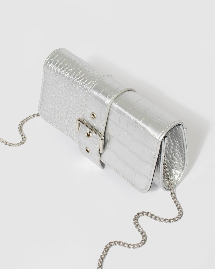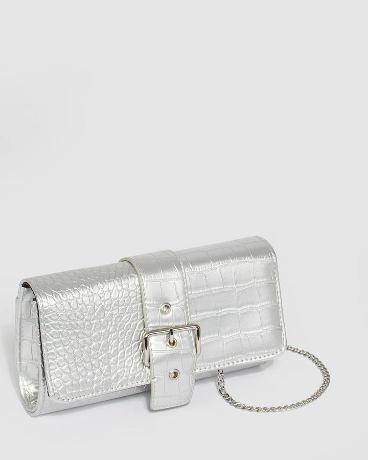 Silver Yasmine Buckle Clutch Bag