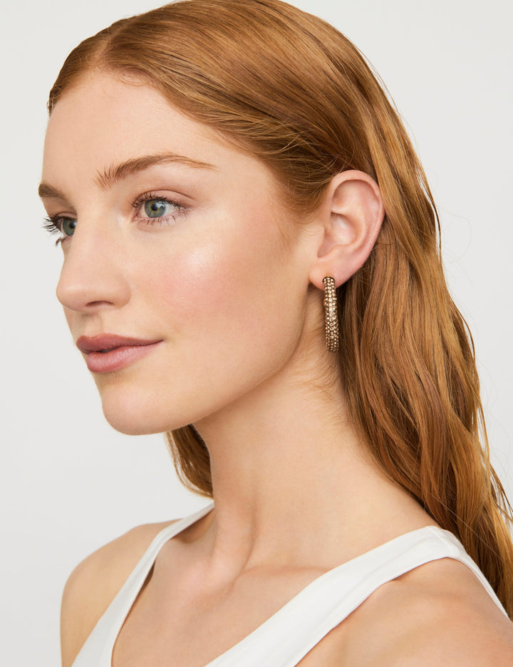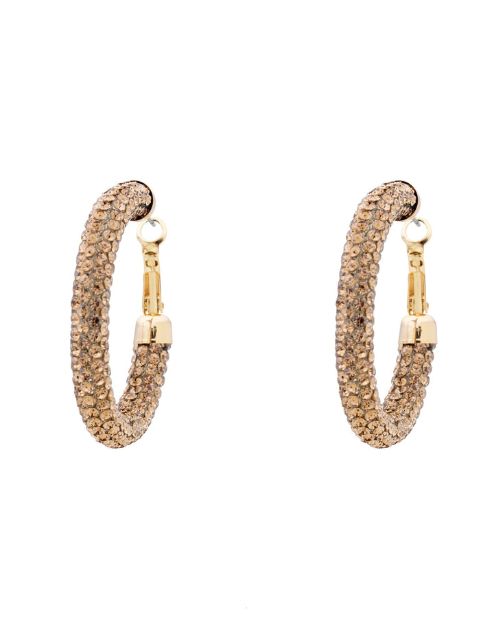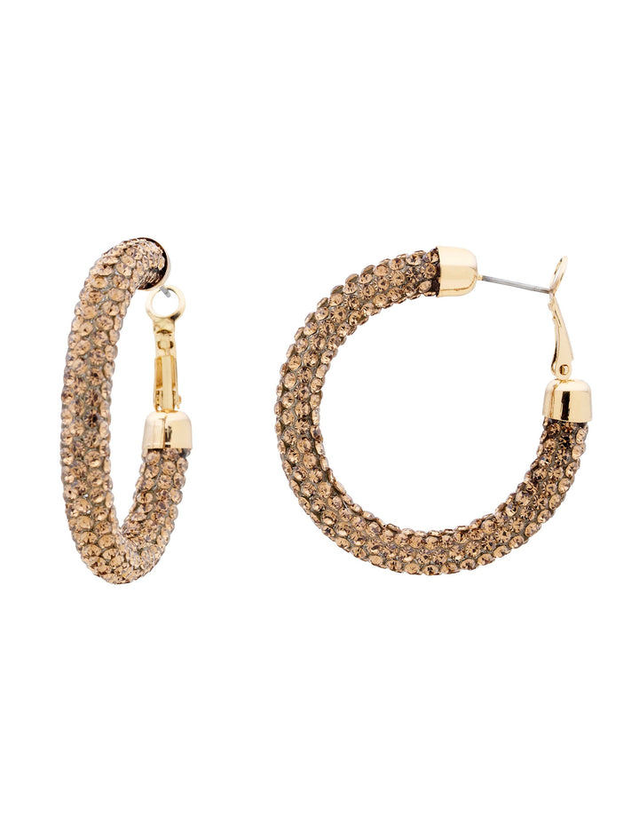 For a fun, eye-catching twist on classic hoop earrings, choose the gorgeous Sparkly Hoop Earrings. These sleek hoops feature sparkling stone detailing in a beautiful bronze tone, perfect for dressing up your everyday style or taking your look from day to evening with ease.