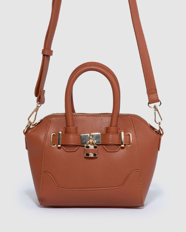 Tan Frankie Mini Lock Tote Bag
