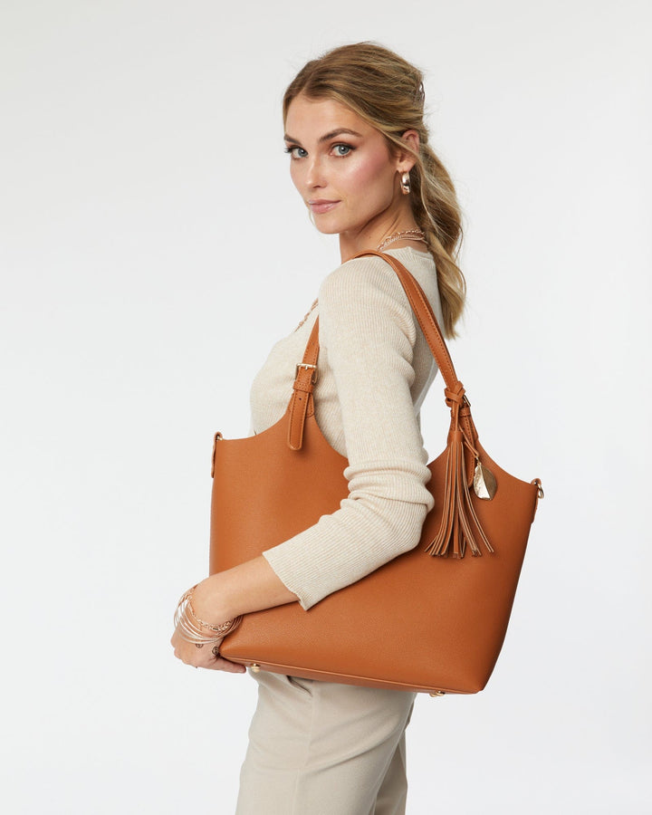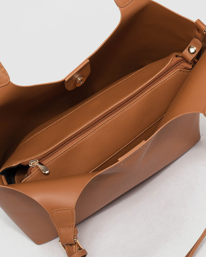 - Removable pouch converts to crossbody bag with zip closure and detachable adjustable shoulder strap