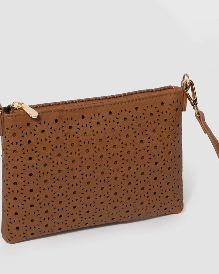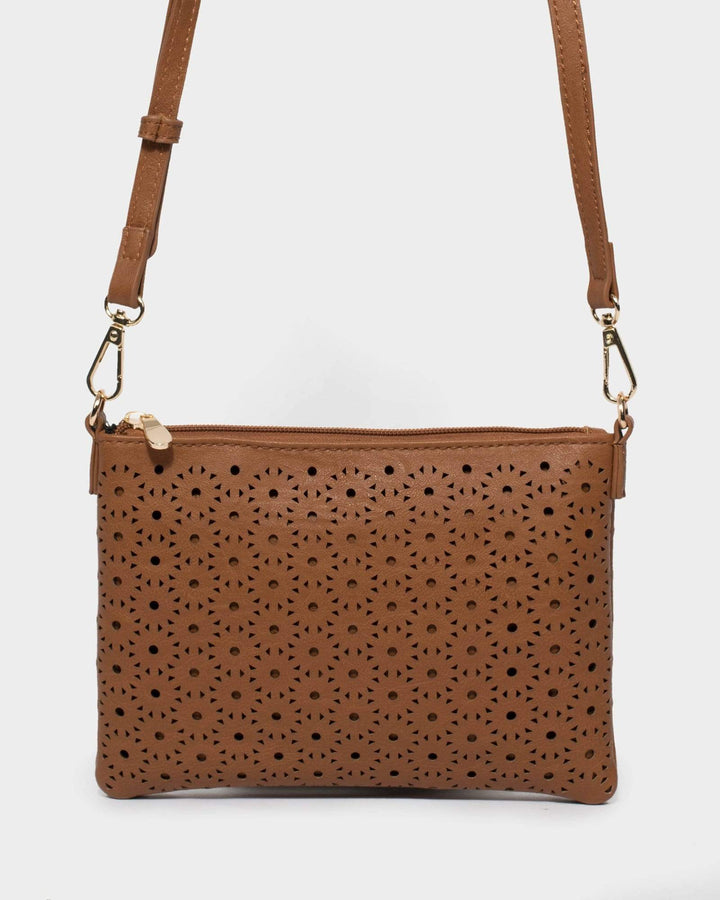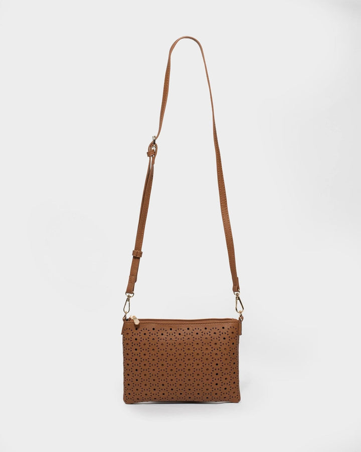Tan Punchout Crossbody Bag