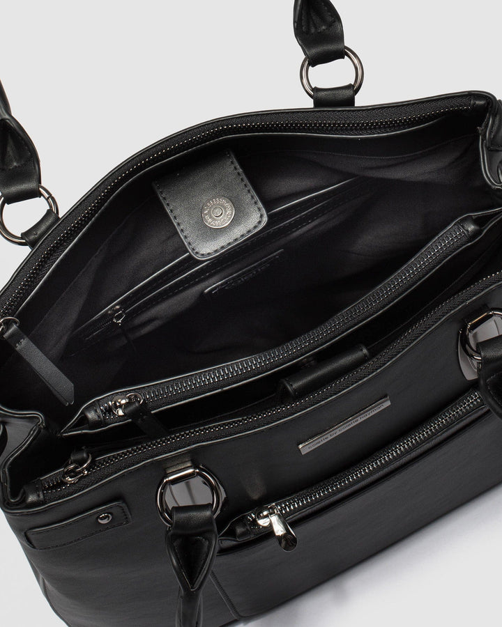 - Black Finish With Gunmetal Tone Hardware