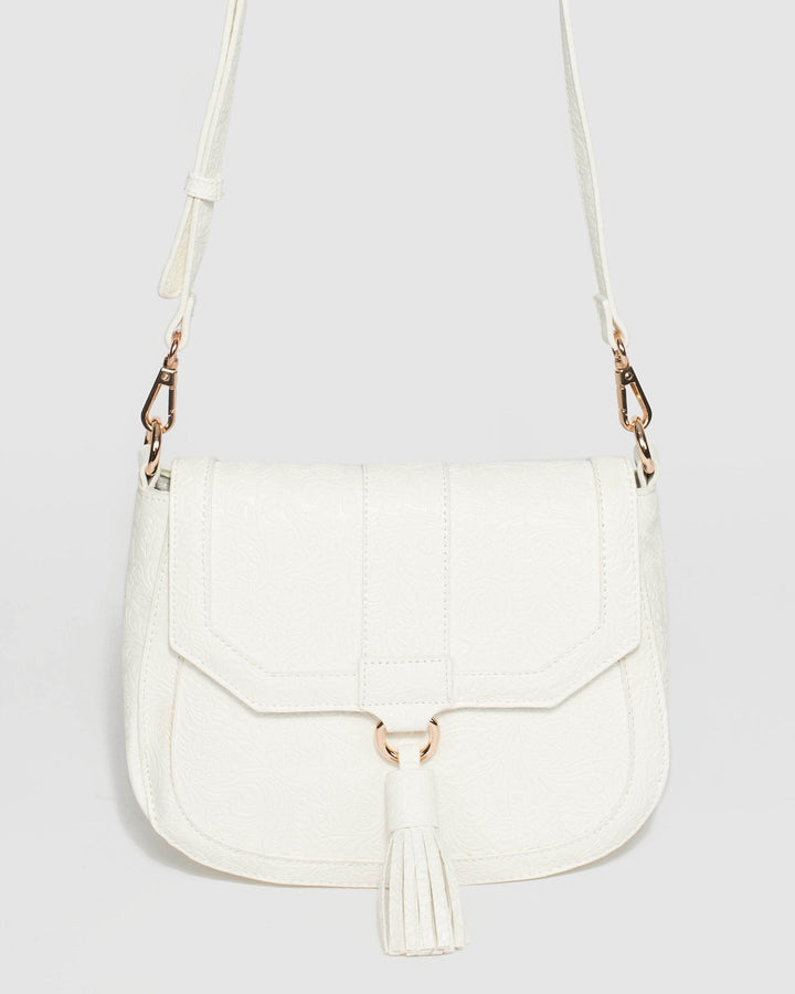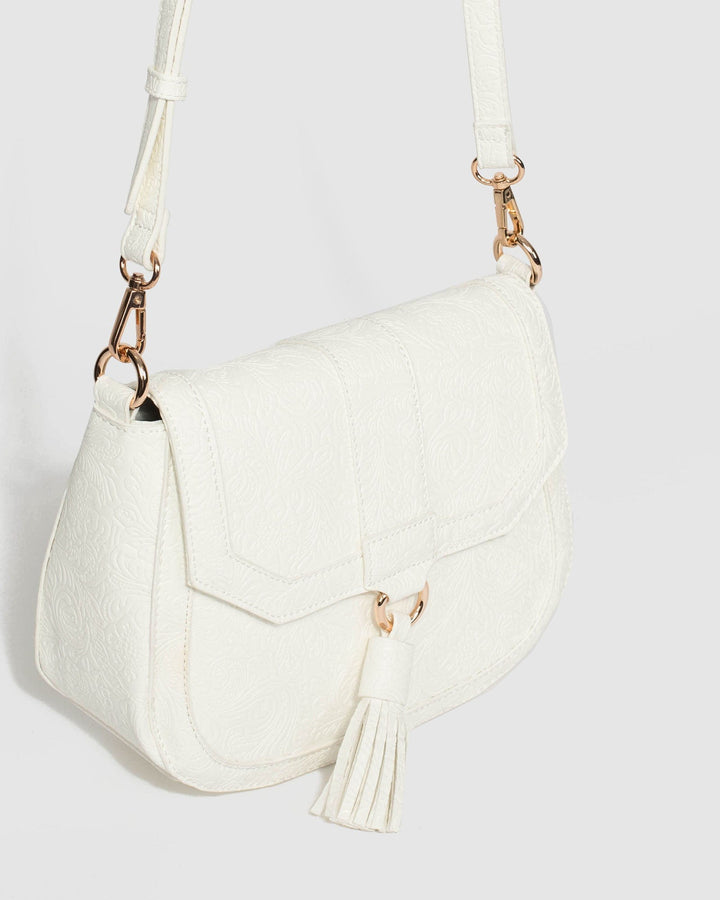 White Aria Tassel Saddle Bag