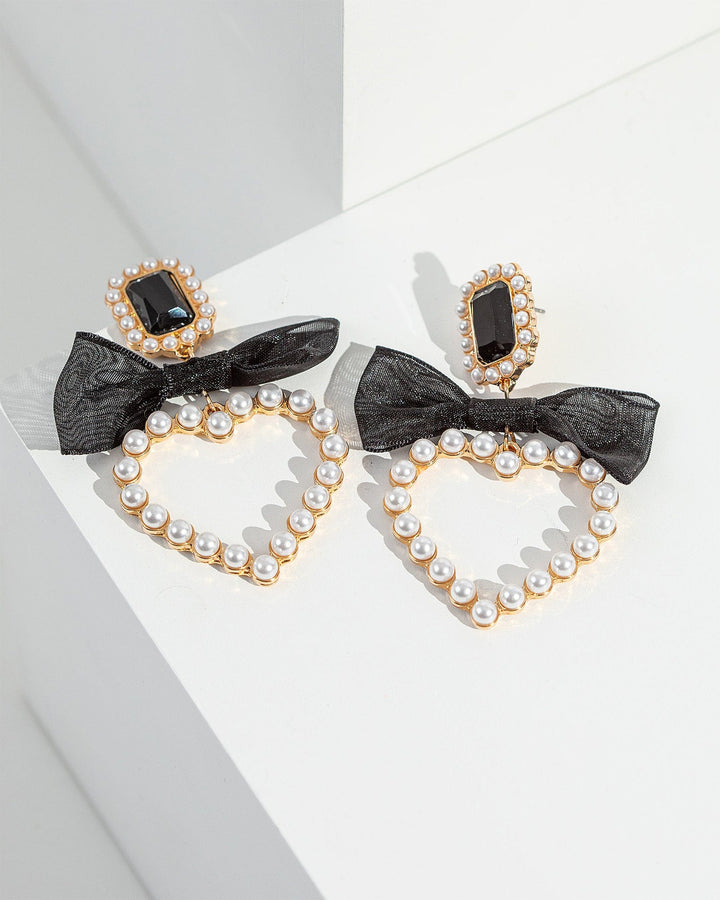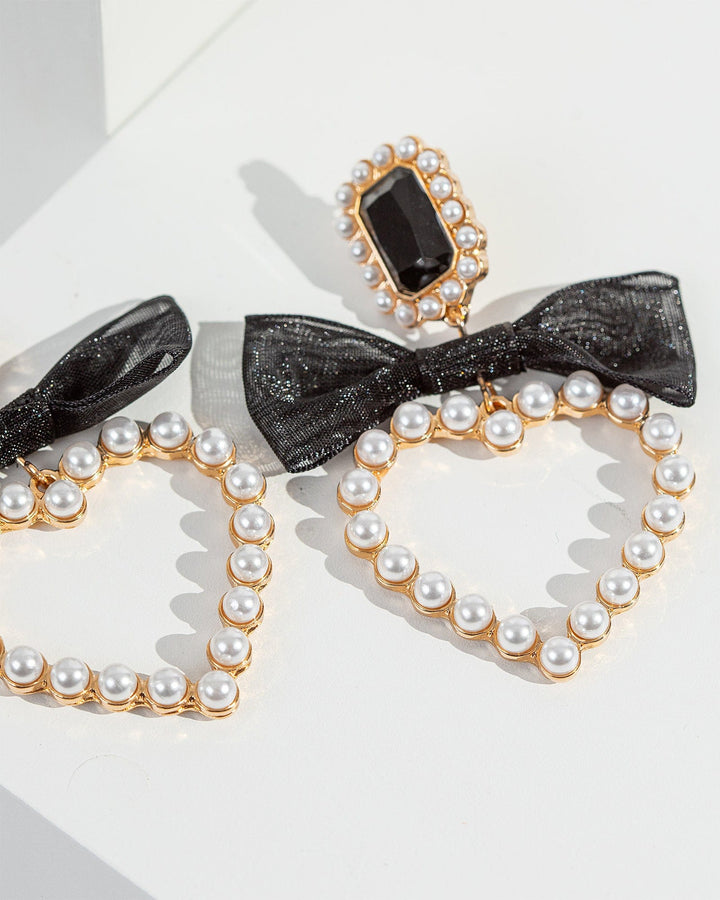 White Bow Pearl Heart Earrings